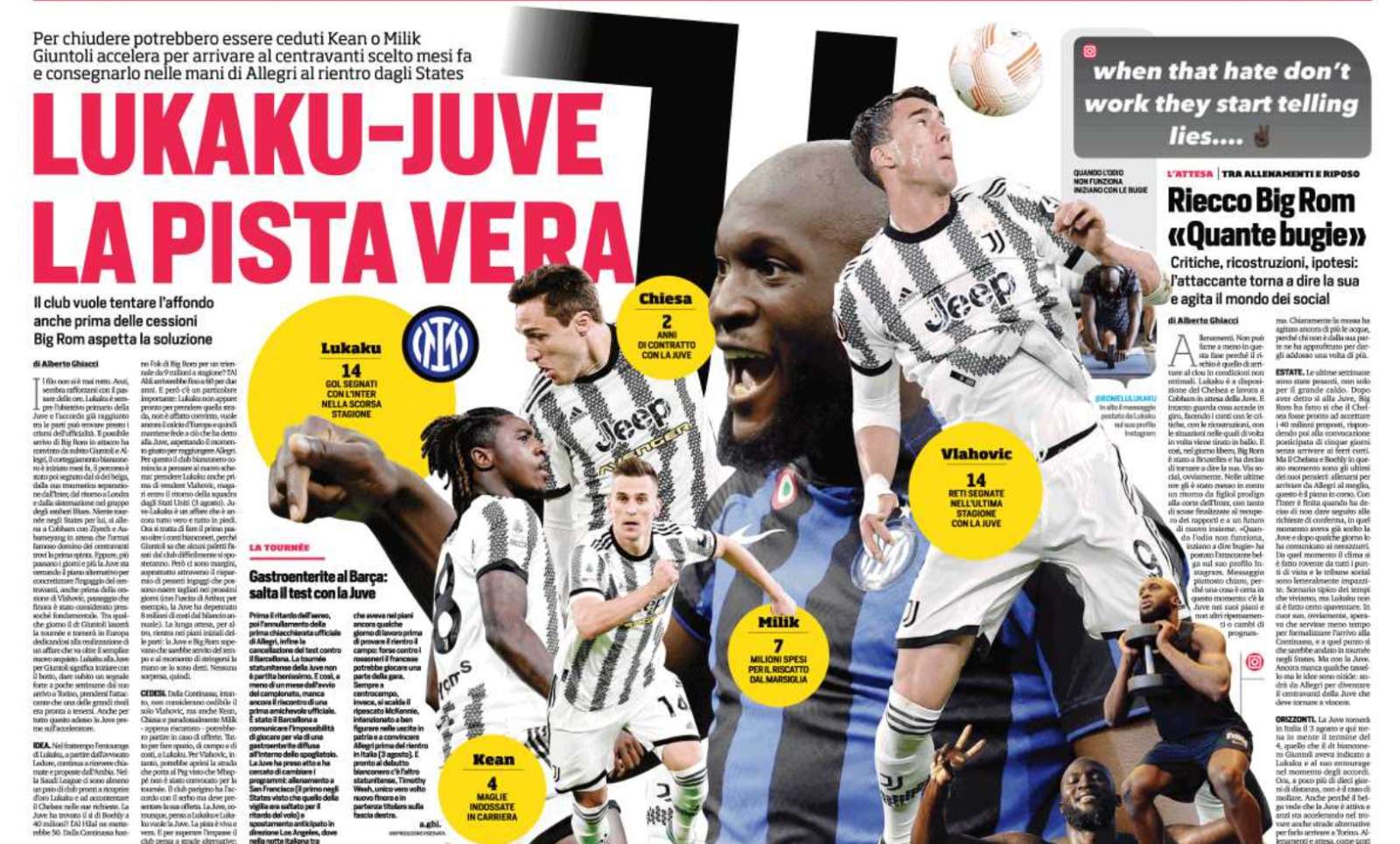 Il Corriere dello Sport non ha dubbi: in questo calciomercato Romelu Lukaku, che ha tradito l’Inter, vuole solo la Juventus