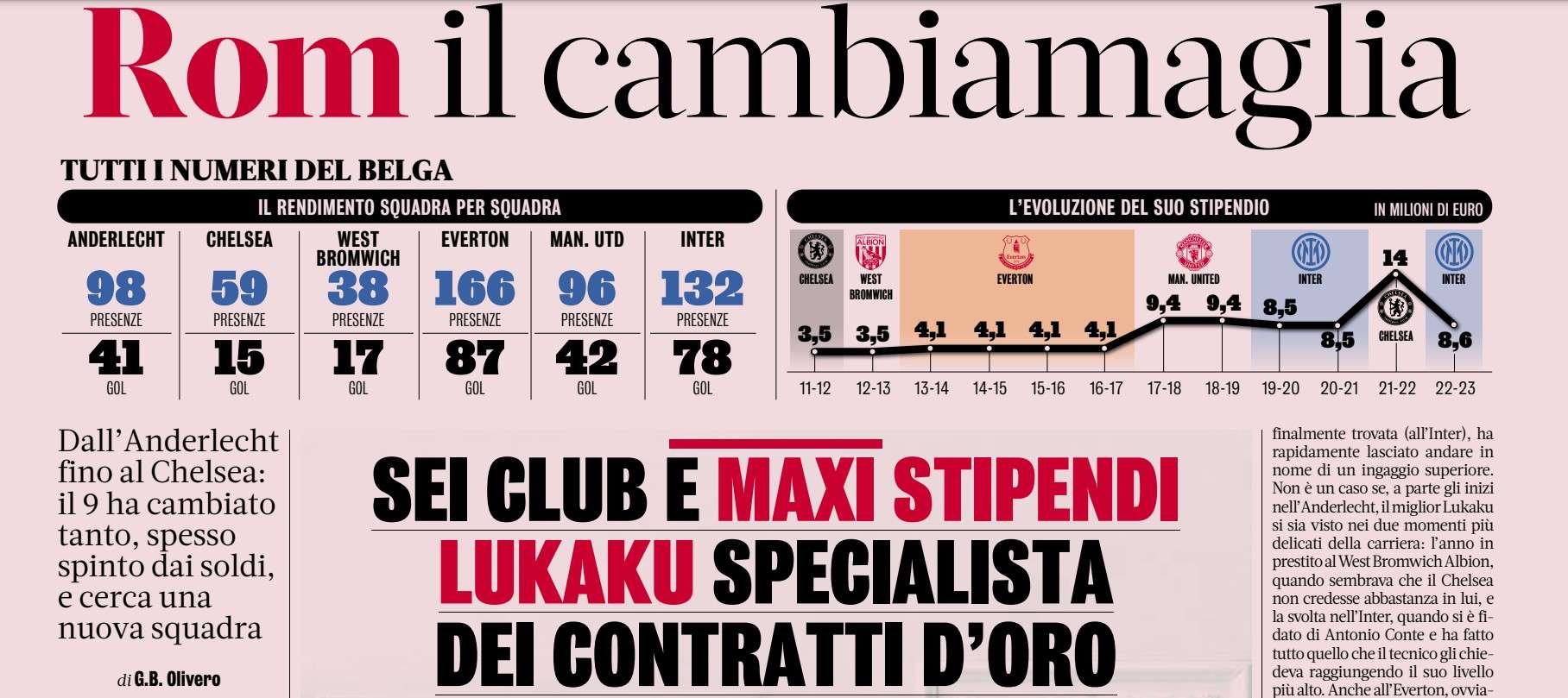 Romelu Lukaku è grande esperto nei trasferimenti. In carriera ha cambiato sei squadre e sempre spostandosi per grandi cifre: sia come costo del cartellino, sia come ingaggio. Il suo obiettivo è quello: guadagnare e riscattarsi dopo un’infanzia di povertà. Il calcio era l’unica via percorribile e l’unica via che ha percorso Big Rom.