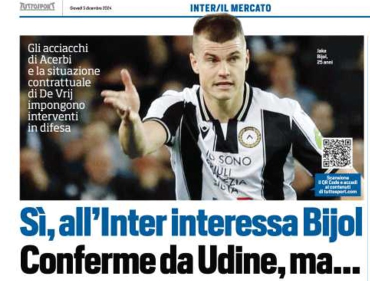 I nerazzurri seguono Bijol da due stagioni e ne hanno osservato molto da vicino la crescita. Piero Ausilio e Dario Baccin vogliono rinforzare la difesa con un centrale la prossima estate quando si decideranno le sorti di Francesco Acerbi, che ha diversi problemi fisici, e Stefan De Vrij, al momento in scadenza il 30 giugno 2025.