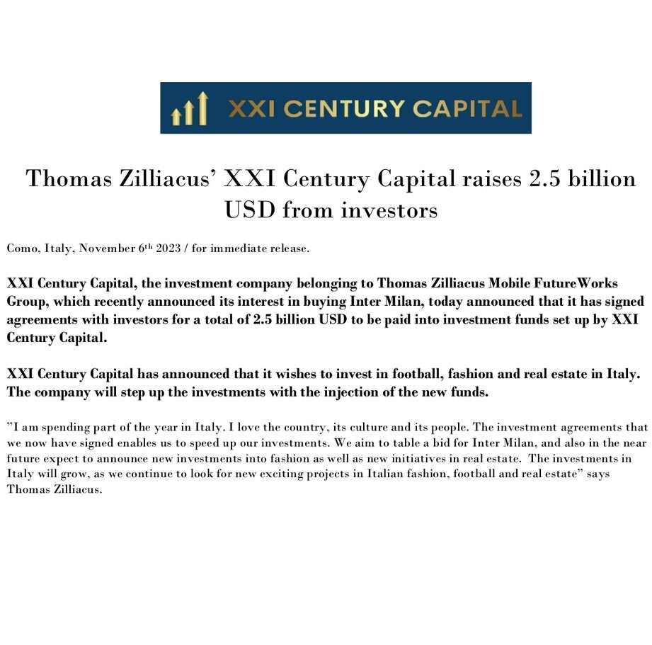 Come si legge nel comunicato pubblicato da Thomas Zilliacus sul proprio profilo di Twitter, la volontà è quella di provare ad acquistare la società nerazzurra degli Zhang e non solo. Il magnate finlandese vuole annunciare anche investimenti nella moda e in altri progetti in Italia per continuare a crescere: