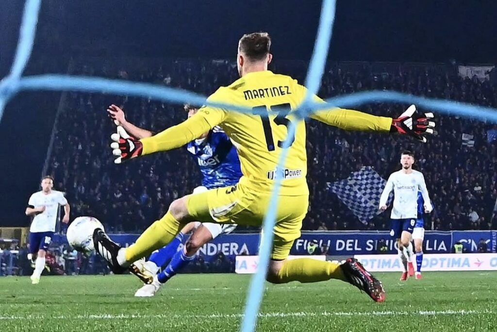 Non solo il destro di Hakan Calhanoglu e quello di Petar Sucic. O la testa del regista turco. Ci sono anche mani, braccia e corpo di un portiere spagnolo – il primo della storia nerazzurra, o forse no – sulla finale di Coppa Italia conquistata martedì sera dall’Inter. Josep Martinez con le sue parate è stato decisivo. E nel suo approfondimento odierno La Gazzetta dello Sport concede ampio spazio a una particolare tecnica dell’estremo difensore.